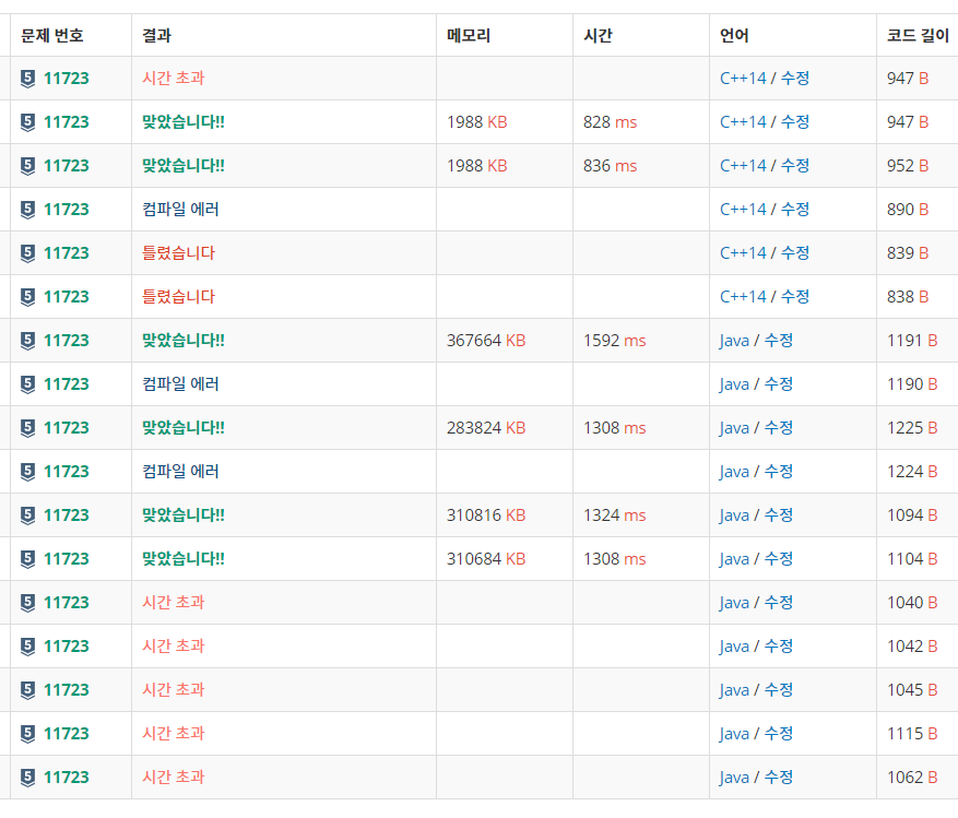 시간초과 정말 많이도 나왔네요 ㅋㅋㅋㅋㅋ