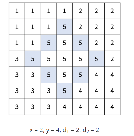 check[x+d1+i][y-d1+i] = 5;