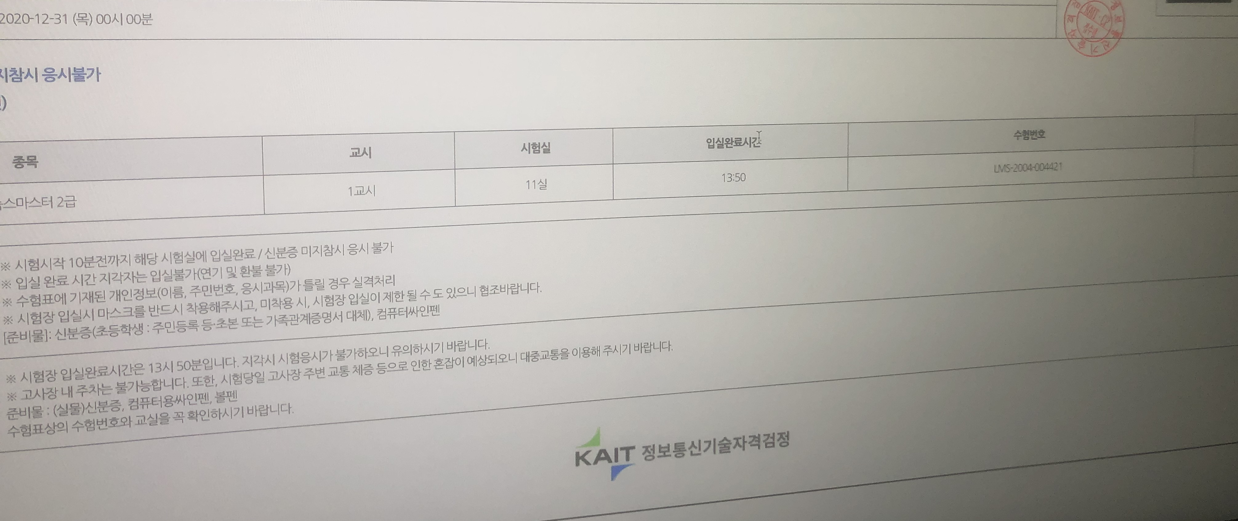 실기는 오프라인으로 봤습니다. 12월 12일자 실기 시험을 보았고