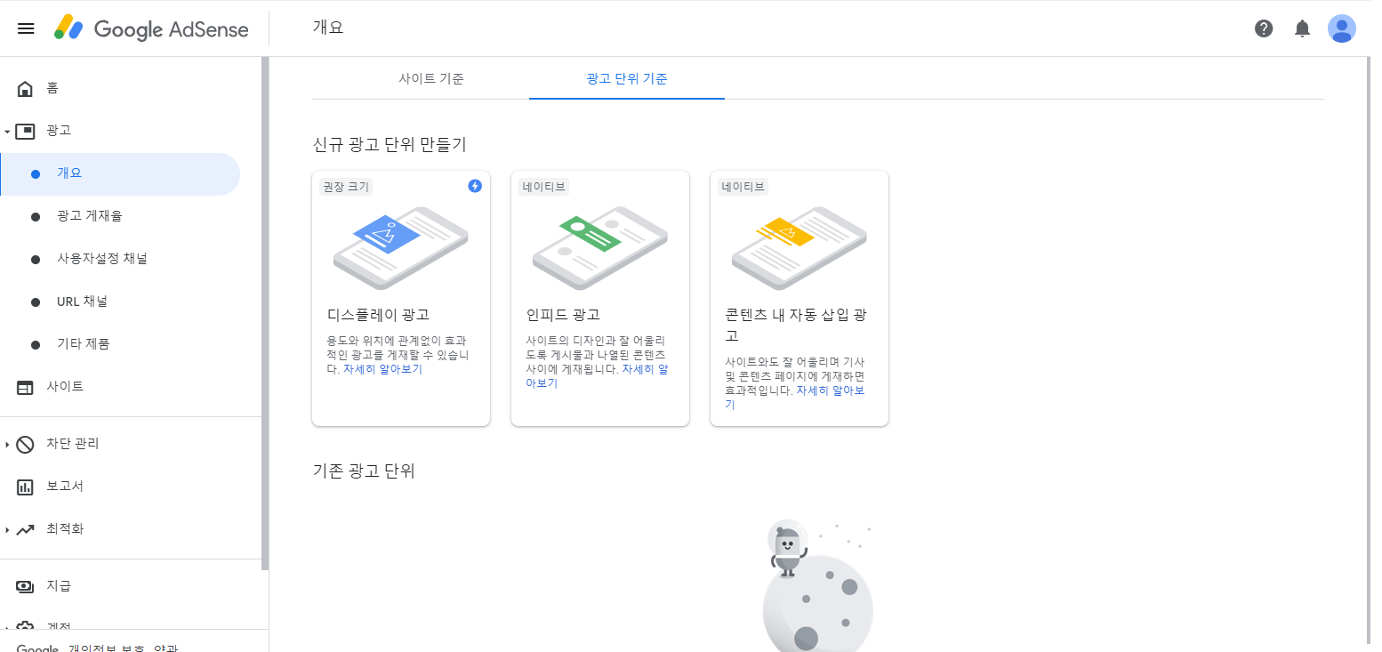 승인 이후 구글 애드센스에 들어가게 되면
