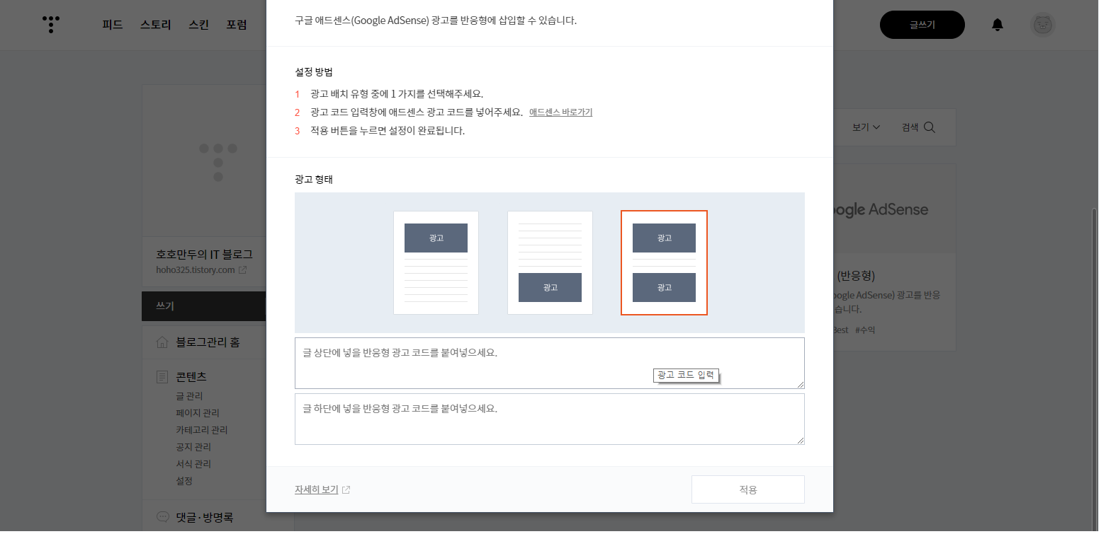 최근에는 티스토리 자체에서 카카오AdFit이랑