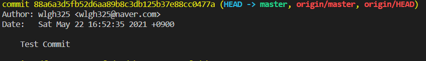 그리고 git log를 이용해서 확인해보면