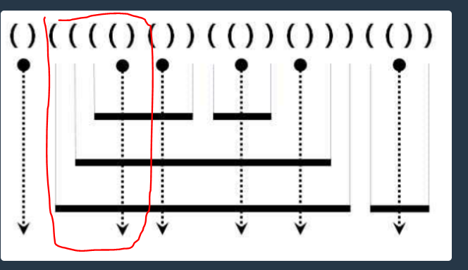 예시를 가지고 설명을 드릴게요 예시 input은 "()(((()())(())()))(())" 입니다.